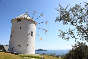 明治41年、小豆島に初めてオリーブがやってきました。それから地元農家のたゆまに努力を積み重ねて、栽培の成功へとつながっていき、昭和29年には県花、昭和42年には県木に指令されました。約2,000本のオリーブ畑に囲まれたここからは、青く広がる瀬戸内海と白いギリシャ風車をみることができます。まさにフォトジェニックな空間で安らぎのひと時をお過ごしください。